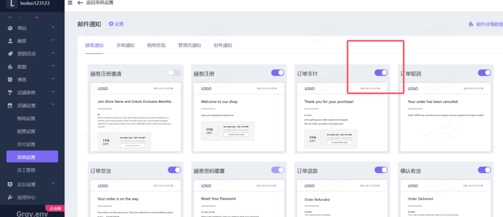 在外贸独立站的运营过程中,邮件通知是一个必要的功能,国外买家也习惯邮件的通知逻辑。在网站的整个运营过程中,有很多的事件需要通过邮件通知买家或者商家,比如订单支付,发货,通知买家, 下单或者询盘通知商家等等。这个过程中需要通过SAAS平台的邮件发送机制去触发邮件通知,这个时候,可能会出现一个邮件发送失败,或者邮件发送进入垃圾箱等等情况。我们来看看怎么优化解决这个问题。1、首先要检查邮件通知的功能是否正常启用。