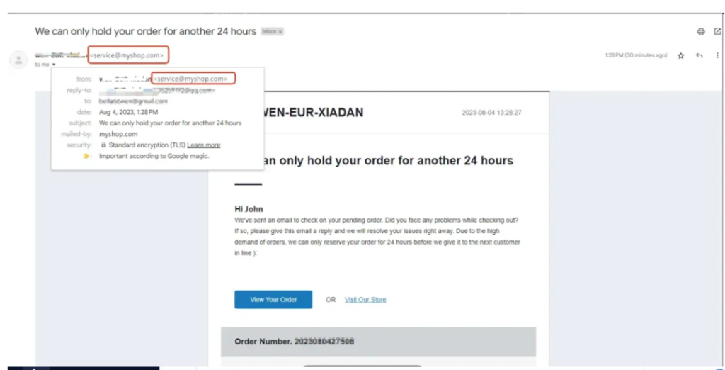 2. 邮件头部发件人将会显示您的品牌域名信息,更加可信和专业