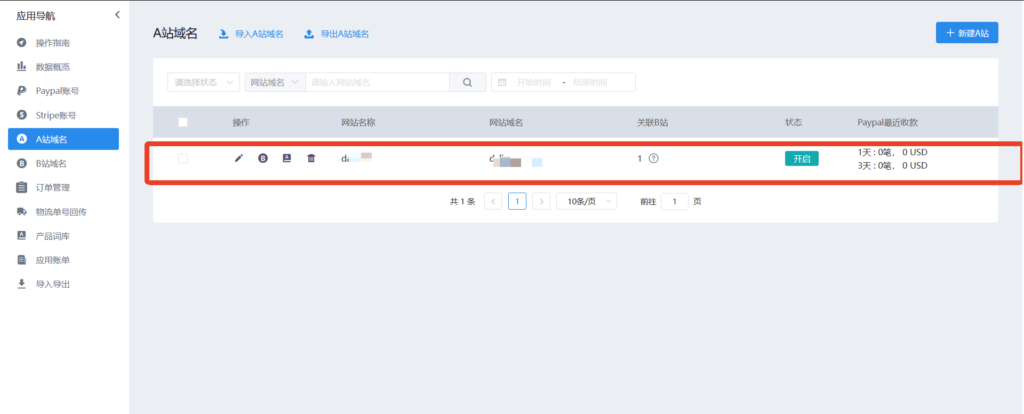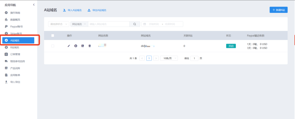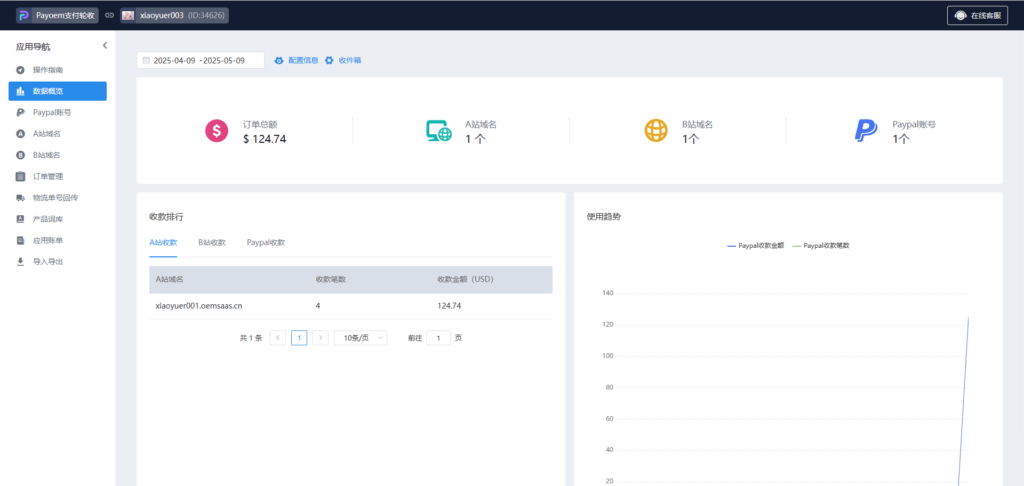 强大的功能集合 集多种功能与一体,包含整体配置的数据;订单总额、A站域名、B站域名、Paypal账户产生的数据一览无余推荐