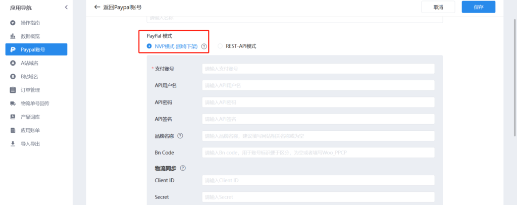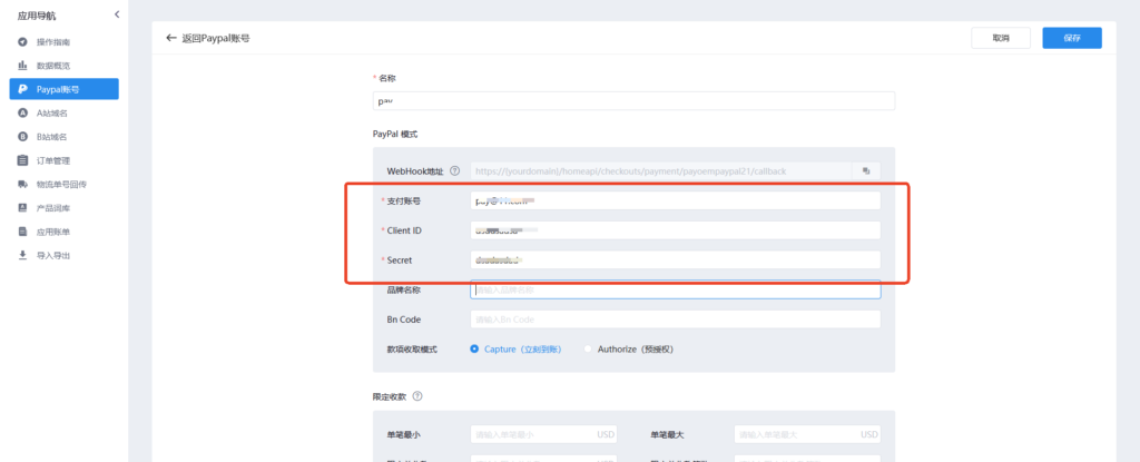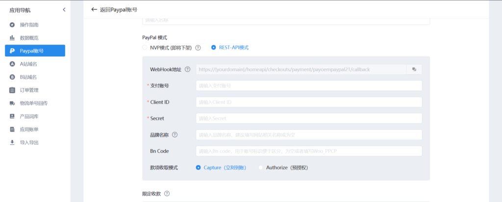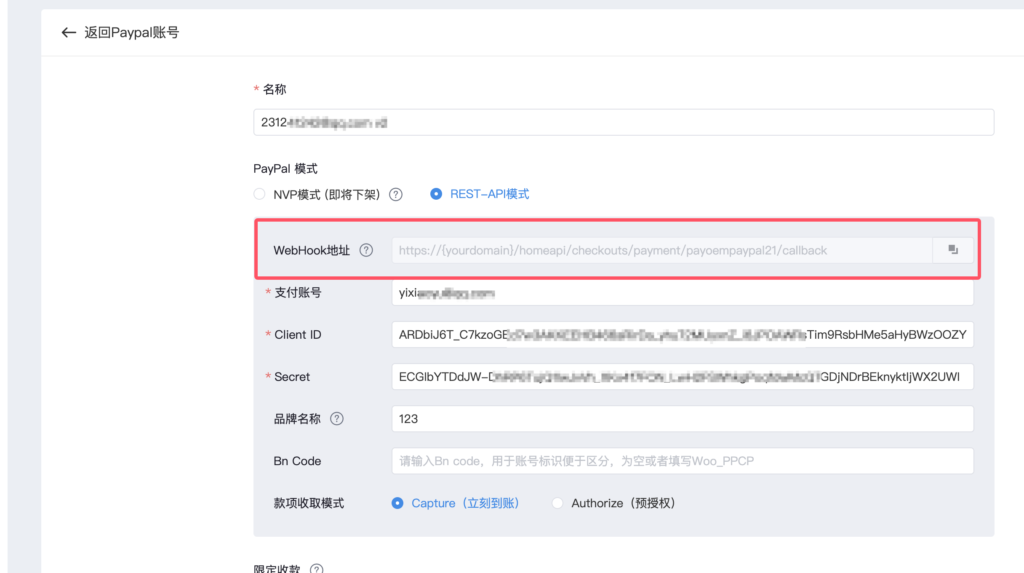 19、当选择REST-API模式时(注:只支持paypal v2 不支持个人账户)