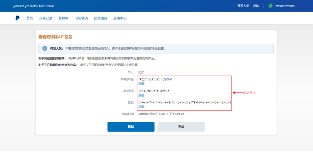 17、复制签名页面的API用户名、API密码、签名