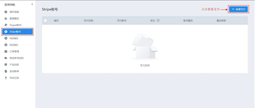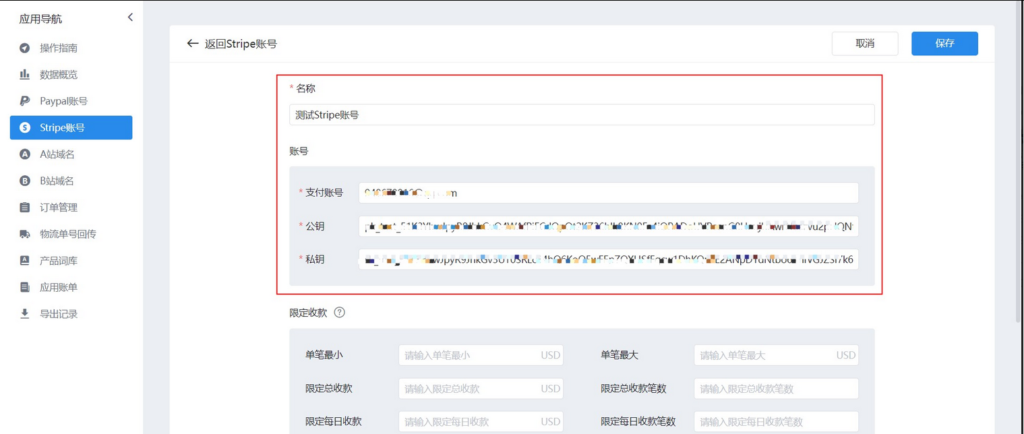 26、Stripe账号收款如果是Stripe则选择Stripe账号;例如:配置Stripe,选择Stripe账号,点击新建支付