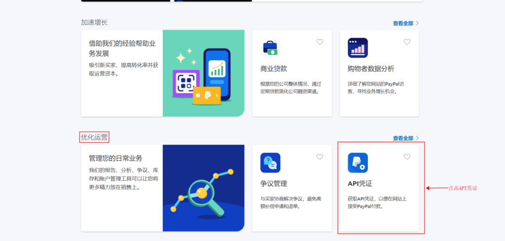 22、找到优化运营→API凭证,点击进入