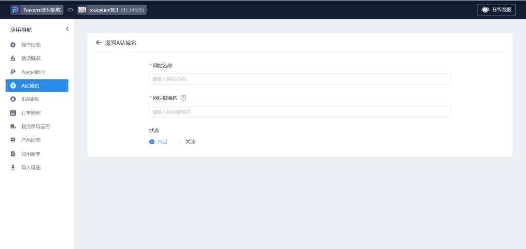 33、进入A站域名新建页,填写网站名称及网站根域名
