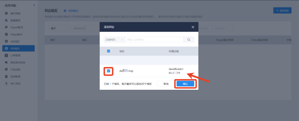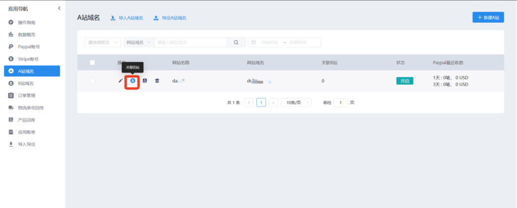 37、关联B站B站第四步关联B站 ,此时需要让添加的B站关联A站,选择菜单“A站域名”