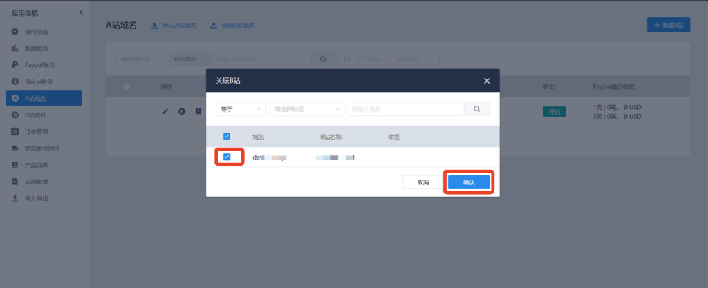 39、选择一个或多个B站与该A站关联,点击确认。此时完成A站与B站的关联