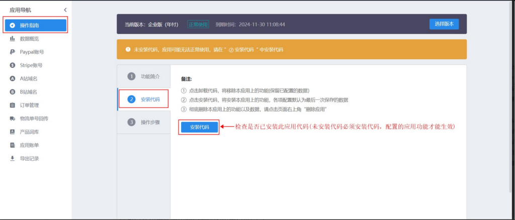 52、检查是否已安装此应用代码;转到操作指南→②安装代码→点击安装代码(操作安装代码的顺序不会影响已经配置好的选项卡配置)