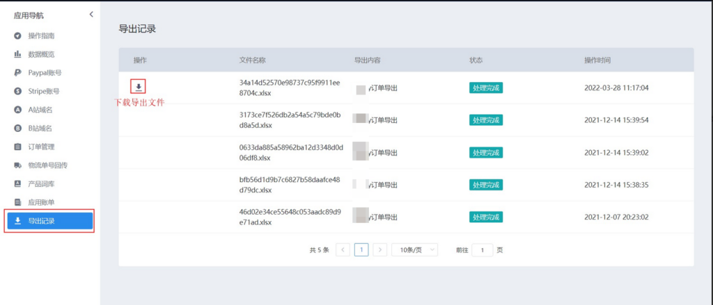 54、您可以在导出记录界面查看导出记录并下载导出文件