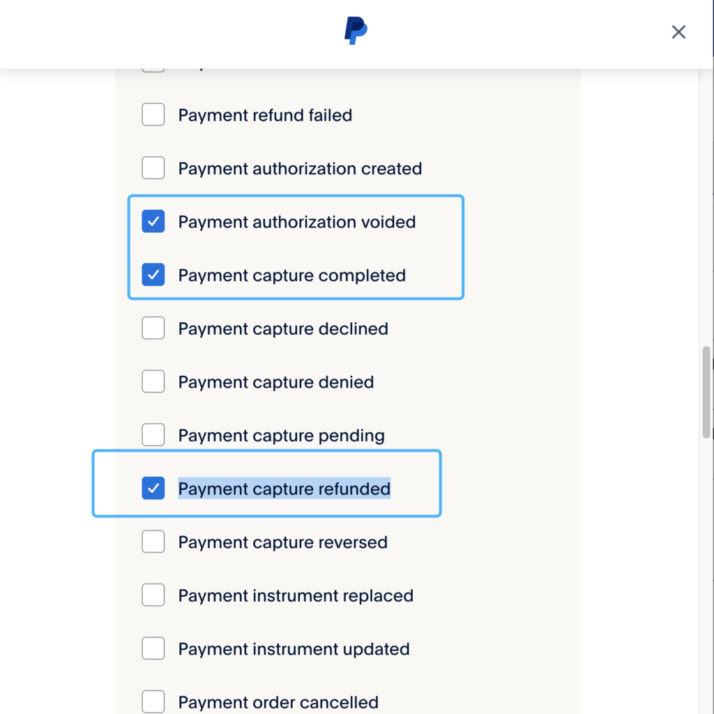 5、勾选【Payment authorization voided】和【Payment capture completed】和【Payment capture refunded】后保存即可